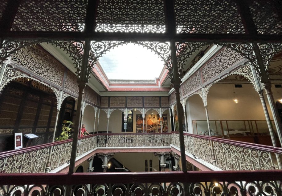From there, we stepped into the courtyard, which feels like the heart of the house. Open to the sky, it brings in natural light and fresh air, creating a calm contrast to the richly decorated interior rooms.