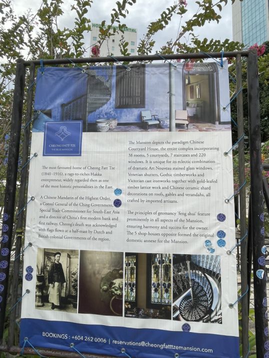 Walking through the main gate. There is a panel telling the story of Cheong Fatt Tze, who was once regarded as the richest man in Malaya, with a reputed net worth of 80 million taels worth of silver (equivalent to approximately $2.4 billion today), which brought him the moniker "the Rockefeller of China". He died in Batavia from pneumonia.