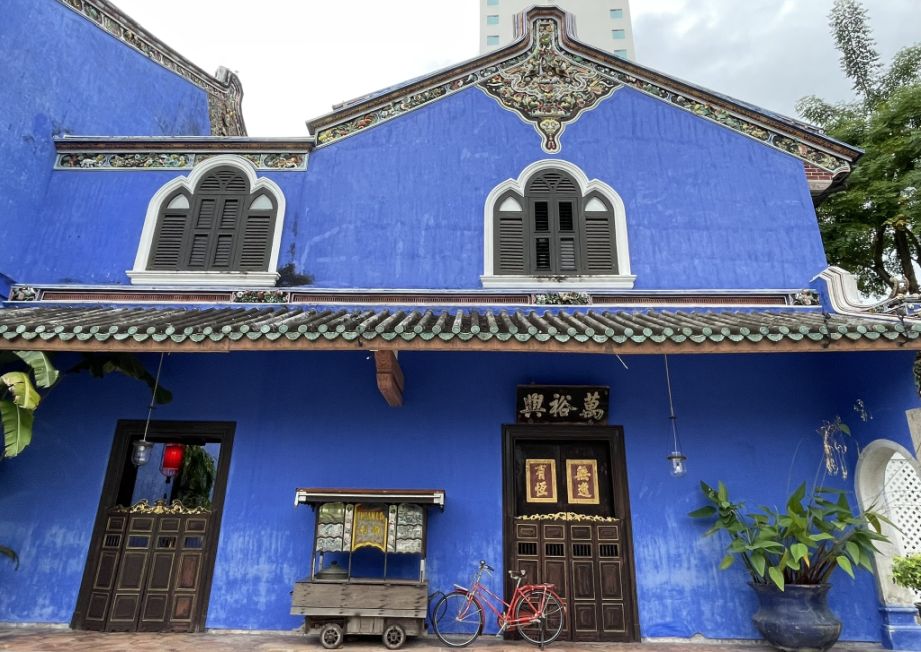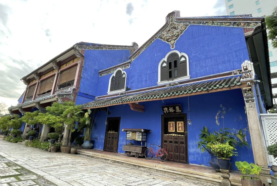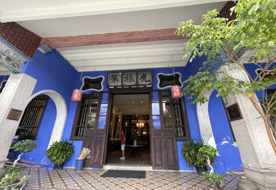 As we stepped inside, the noise fades, and the space immediately opens up into the central courtyard. The mansion immediately stands out with its deep indigo-blue walls, a color made from traditional lime wash mixed with natural blue dye. Under the evening light, the blue feels rich and dramatic, almost glowing. Built in the late 19th century, the mansion once belonged to Cheong Fatt Tze, a powerful Chinese merchant and diplomat whose influence stretched across Southeast Asia. The house reflects his status, grand, confident, and cosmopolitan.