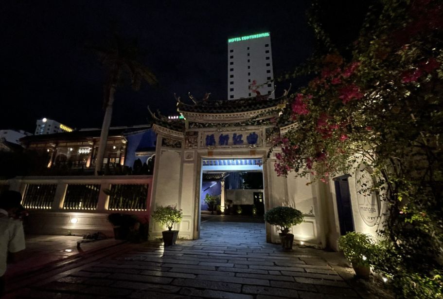 Entering through the main gate of the Cheong Fatt Tze Mansion already feels ceremonial. The gate frames the experience, separating the busy street outside from a quieter, more refined world within.