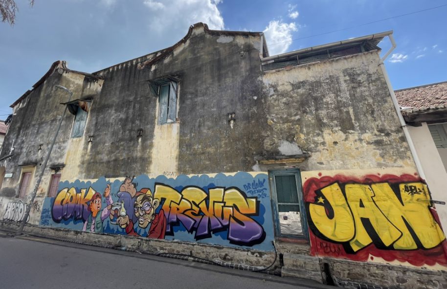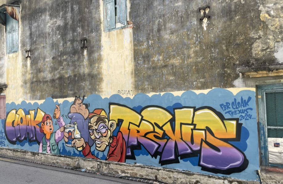 It feels more contemporary and urban compared to the heritage murals, bold, expressive, and unapologetically modern. The contrast works well here: new voices leaving their mark on old walls, showing that George Town’s art scene is still evolving, not frozen in time.