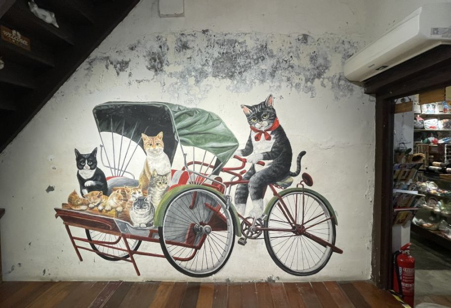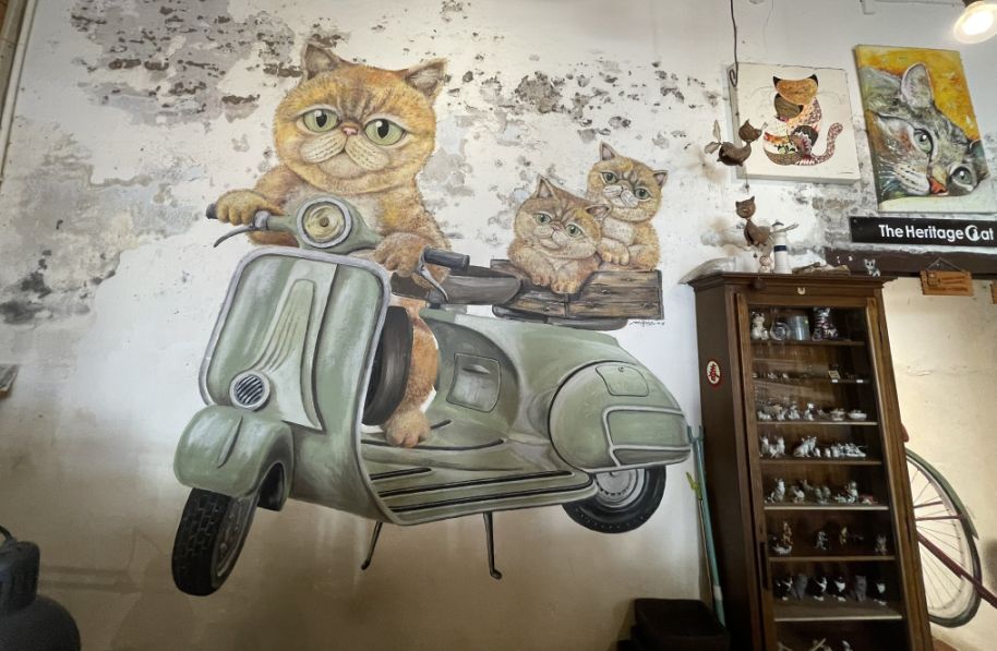 Walking through Cat Alley feels like stepping into someone’s sketchbook, full of joy, eccentricity, and warmth. It’s a reminder that George Town’s charm doesn’t only come from its heritage buildings or famous murals, but from people who open their doors, share their stories, and turn small spaces into something magical.