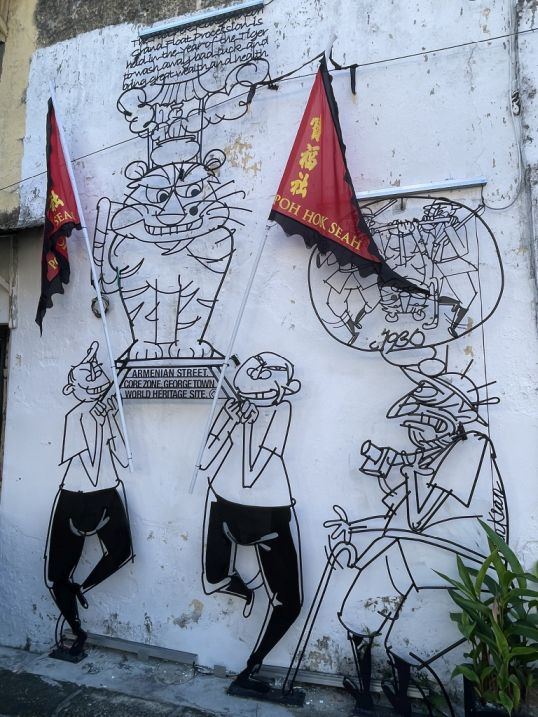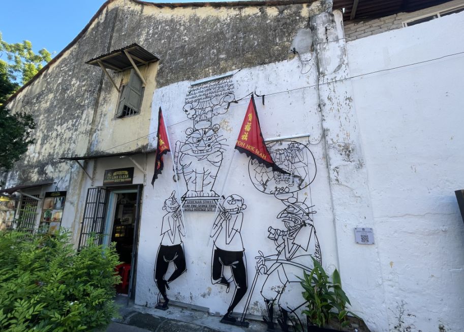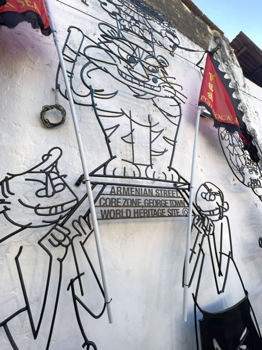Like other metal rod sculptures in the city, this one uses a simple, almost cartoon-like style, but the message is meaningful. It highlights social structure, labor, and daily movement in old George Town who walked, who carried, and how life flowed through these narrow lanes.