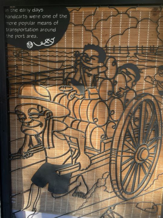 Another Rod sculpture showing the early days where handcart were one of the more popular means of transportation around the port area.