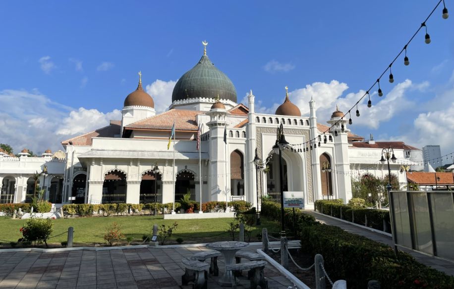 The mosque features a unique blend of Mughal (Indian-Islamic) and British Colonial influences. The classic arched windows and the smooth, plastered finish typical of early 19th-century construction in the Straits Settlements. Unlike the towering, needle-like minarets of modern mosques, this one features a more modest, shorter minaret topped with a small dome. It’s proportional and charming rather than imposing.