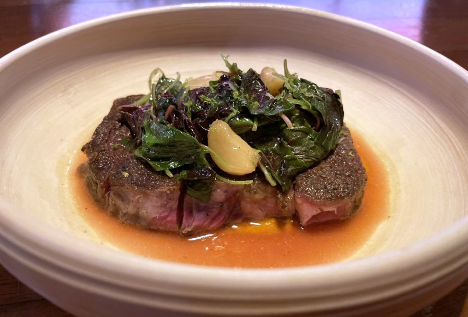 The steak with capsicum rendang and purple spinach is a highlight. The meat is robust and satisfying, while the capsicum rendang brings layered spice, slow, aromatic heat rather than sharp fire. The purple spinach adds color and a gentle vegetal note, balancing the richness of the dish.