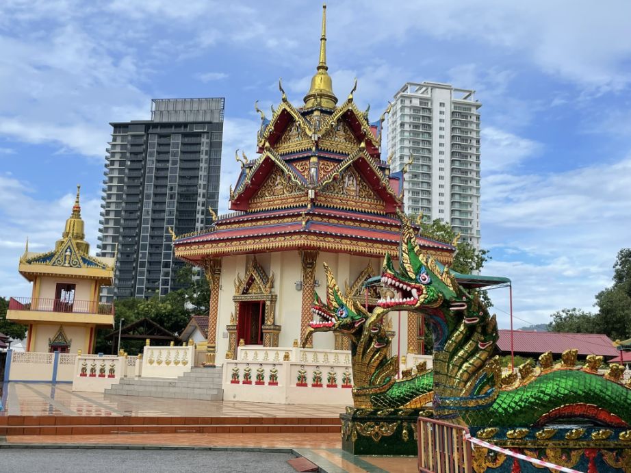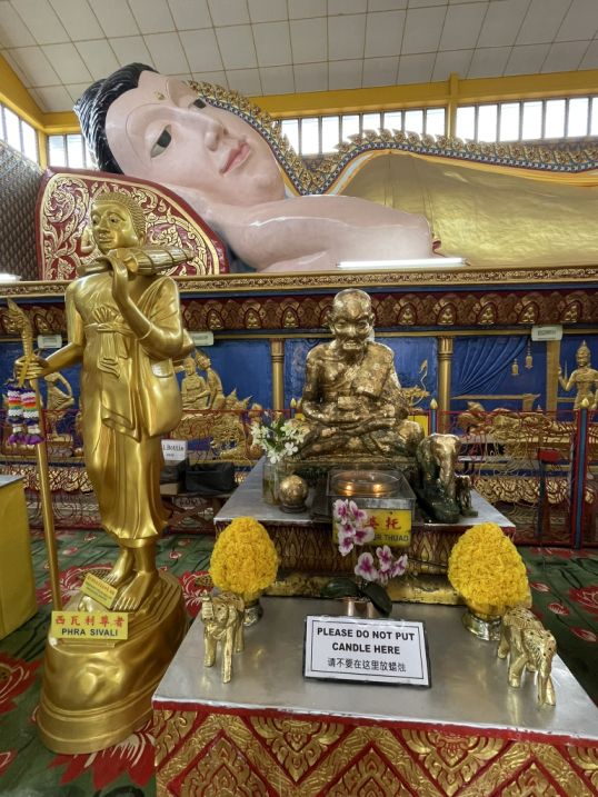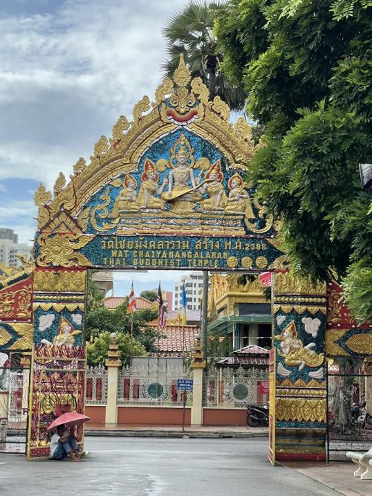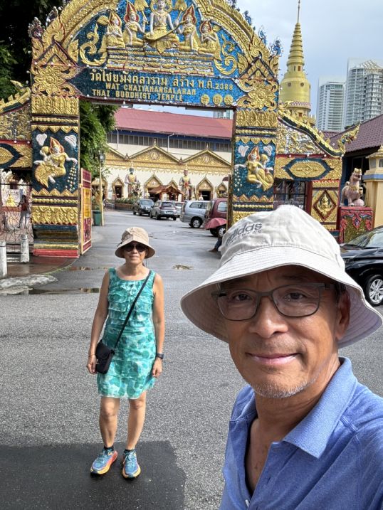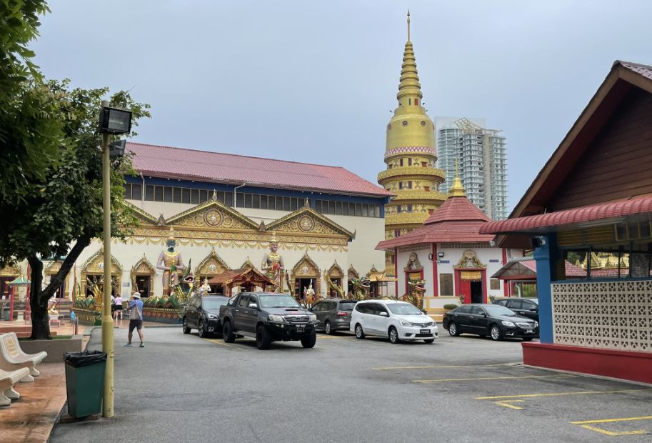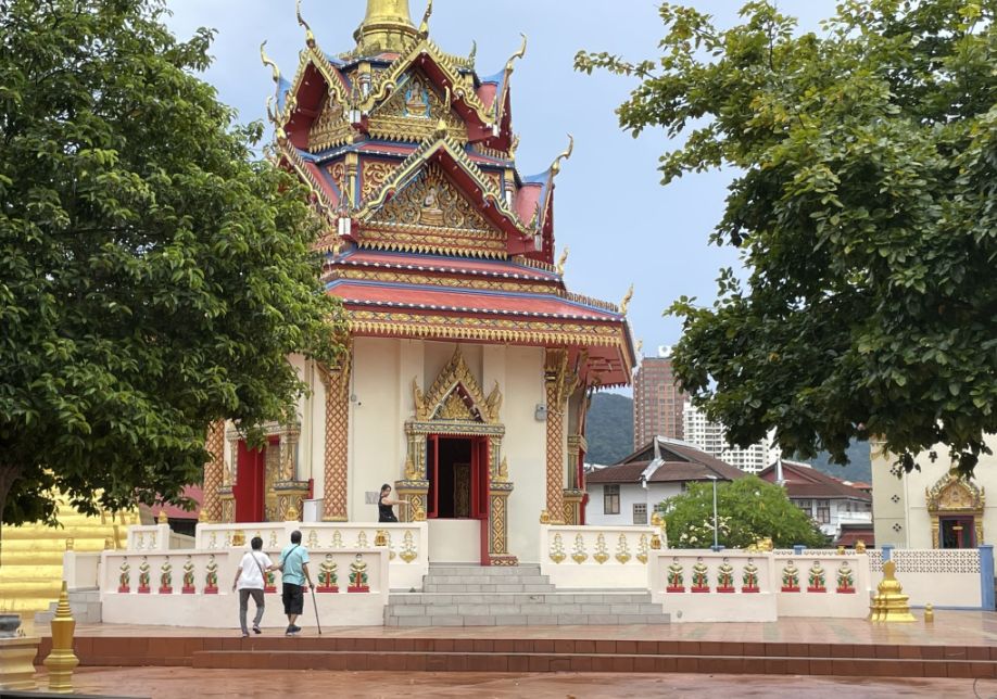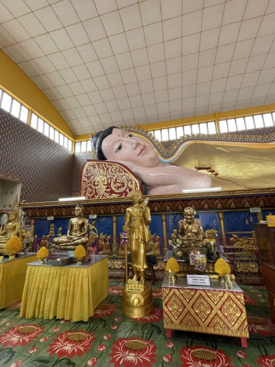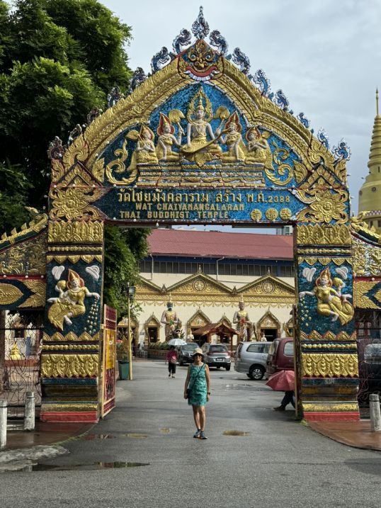 We took a taxi to Wat Chayamangkalaram (less than 10 minutes drive from our hotel) which bought us into a very different cultural space, one that feels distinctly Thai, even though we are still in Penang. This temple is one of the most important Thai Buddhist temples in Malaysia, and is famously home to one of the longest reclining Buddha statues in Southeast Asia. Established in 1845 on land granted by Queen Victoria, it serves as a vibrant spiritual center for the Thai community and is the oldest Siamese temple in the state.