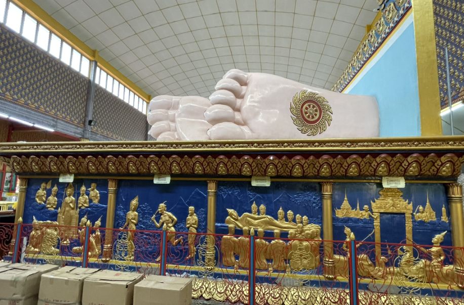 This smaller reclining Buddha represent the cycle of life and the transformation of the Buddha from a prince to an enlightened being