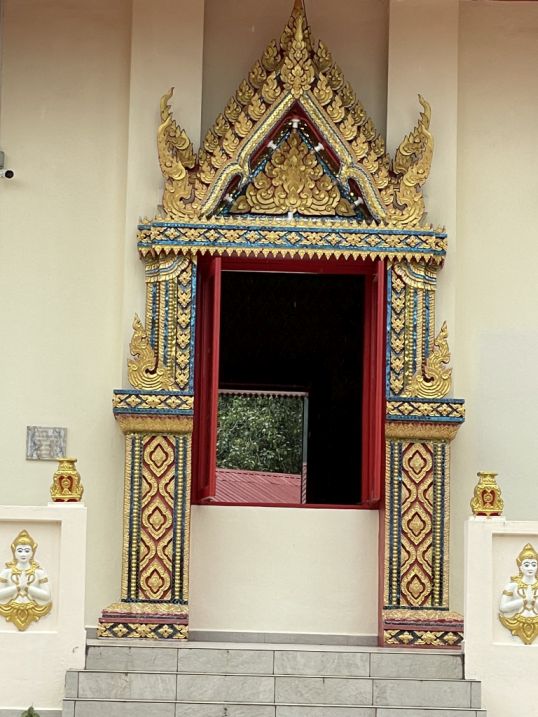 This gate is actually a very distinctive landmark because it looks like a miniature Thai palace. It’s a classic Thai-style "Pylon" Gate, and its design is all about signaling that you are entering "Royal" or "Sacred" ground.