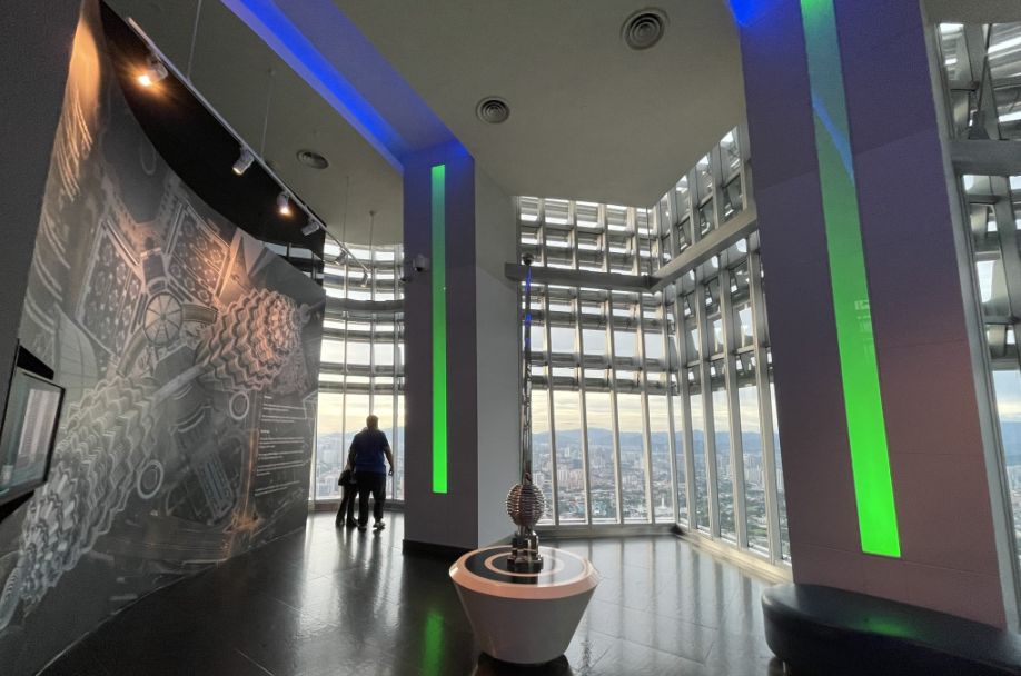 This is the center room in the Observation Deck and in the middle is a display of a scale model of the Petronas Twin Towers and the surrounding Kuala Lumpur City Center (KLCC). The lighting in this room is intentional and futuristic, designed to create a "digital museum" atmosphere