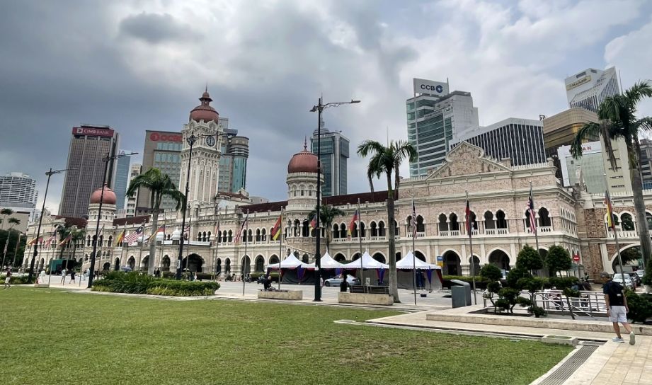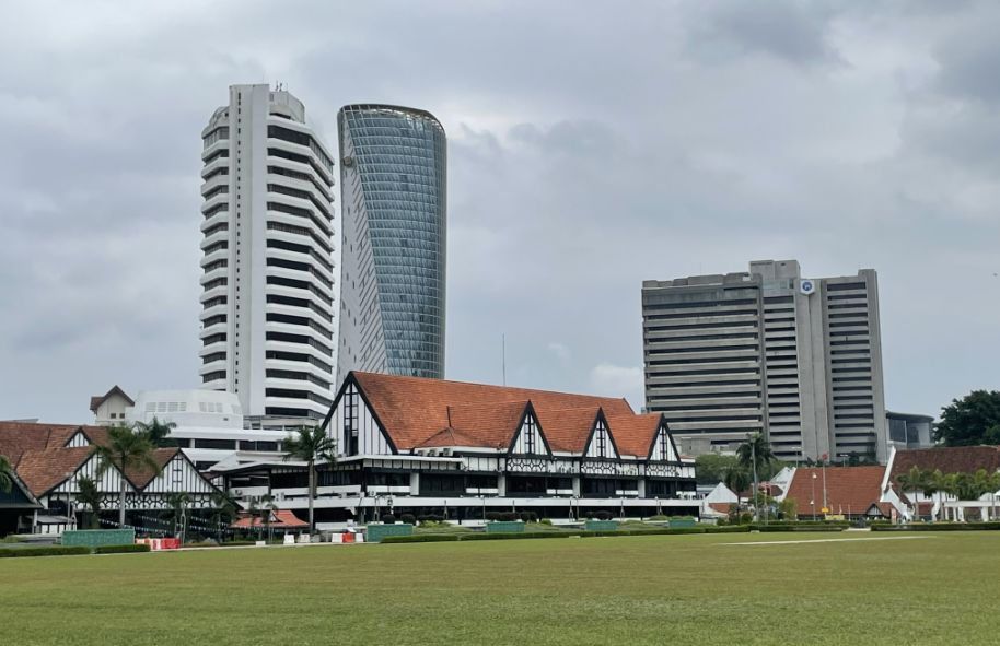 The long, low building with the red roof sitting right on the edge of the lawn is the Royal Selangor Club. It dates back to the late 19th century and was originally a social and sports club during the British colonial period. Its red-tiled roof and white façade give it a very classic, almost nostalgic look, and it contrasts nicely with the grand government buildings nearby.