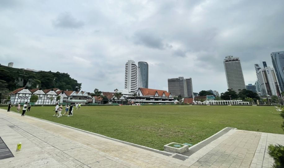 In front of the buildings is a wide, open green park, part of the Merdeka Square area. The lawn is expansive and carefully maintained, offering breathing space in the middle of the city. The openness of the park allows the historic buildings to stand out even more, unobstructed and dignified. The openness of the lawn is very intentional, it’s meant to be a public gathering space, one of the few places in the city where you can stand in a wide green field and be surrounded by so much history.