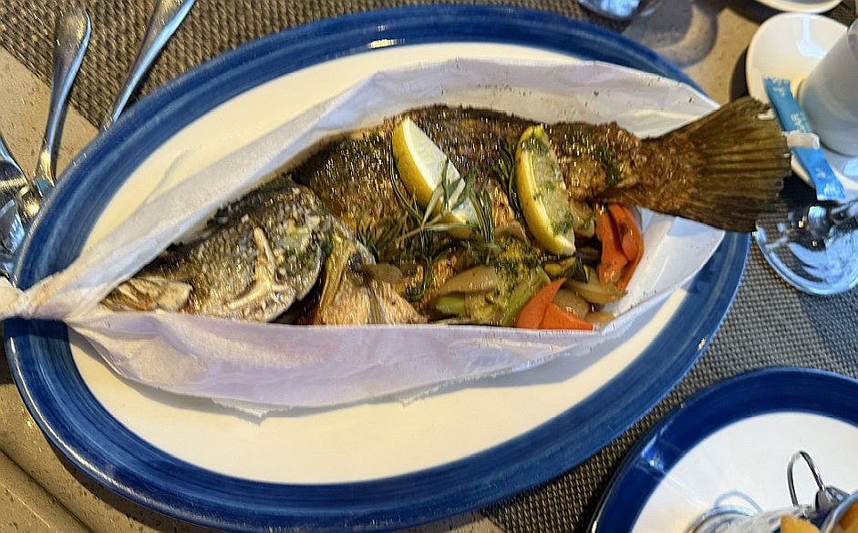 Loan ordered a whole roasted fish.