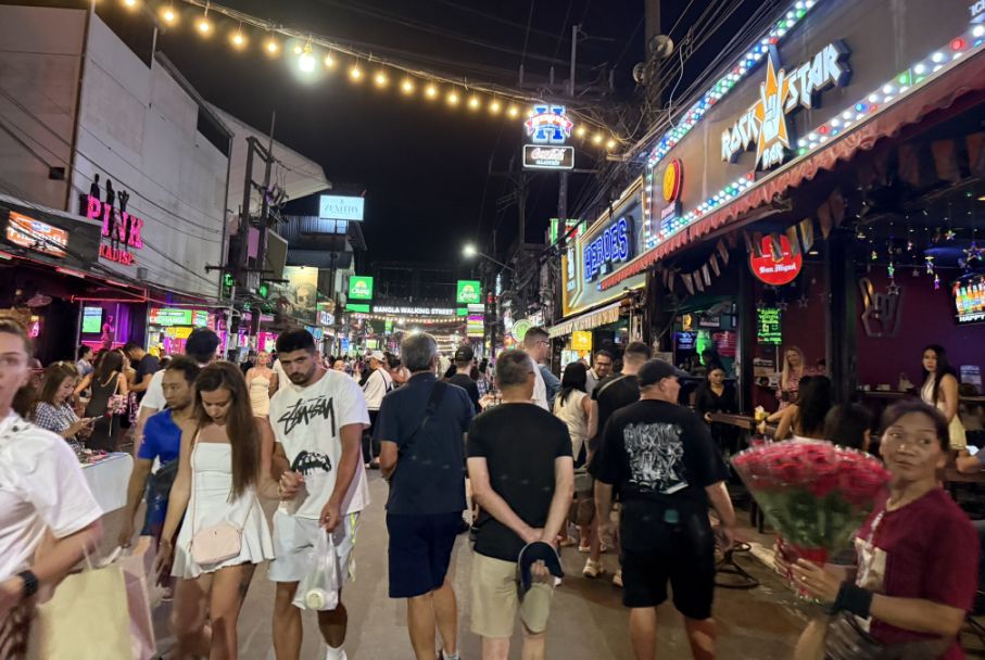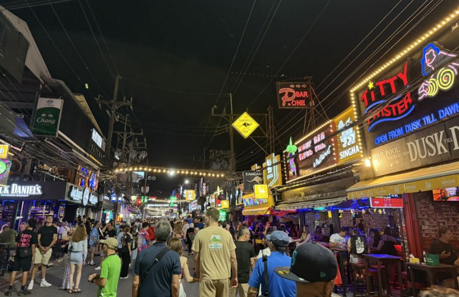 Walking back through Bangla Road at night is a completely different world from the daytime scene. The street becomes a flood of neon lights, loud music spilling out from every doorway, and a constant stream of people moving in every direction.