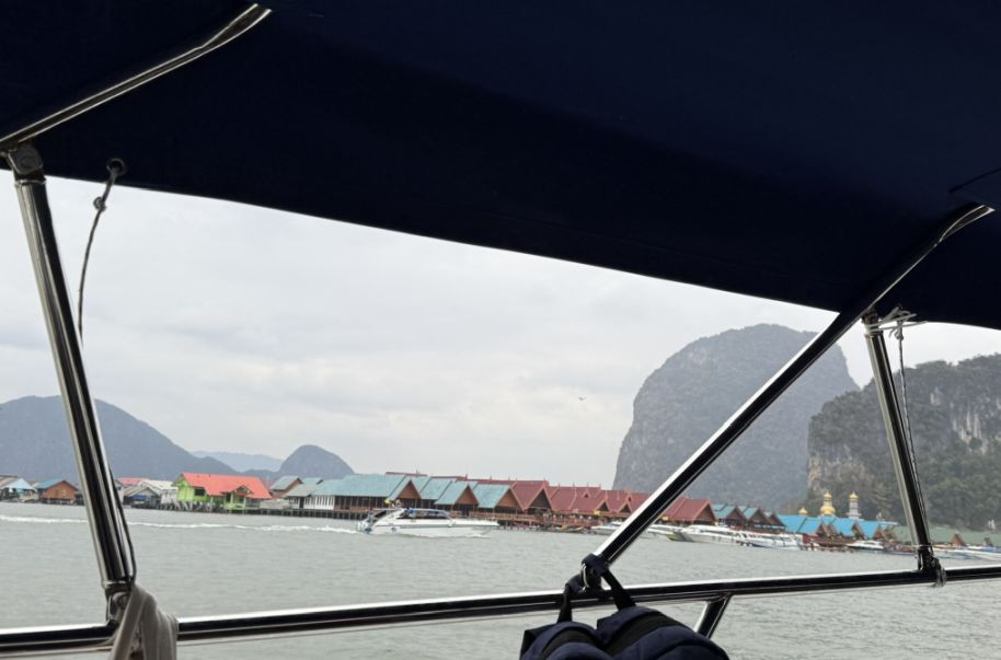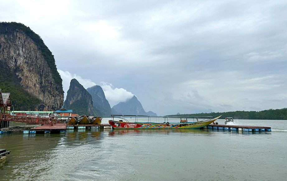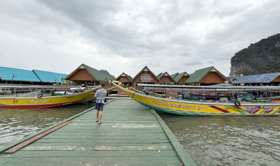 As I heard that low hum of the motor and watch the longtail boat ease itself carefully alongside the floating pier, it feels like a quiet closing moment for Ko Panyi. The boat, empty except for the driver, moves with practiced precision, nudging into place against the gently shifting platform.
