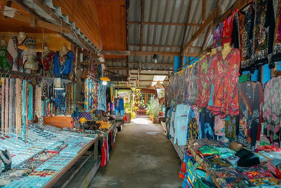 Walking inside the village, the narrow walkways are lined with small shops selling souvenirs, handmade goods, and snacks, clearly catering to visitors, yet still woven into everyday village life.