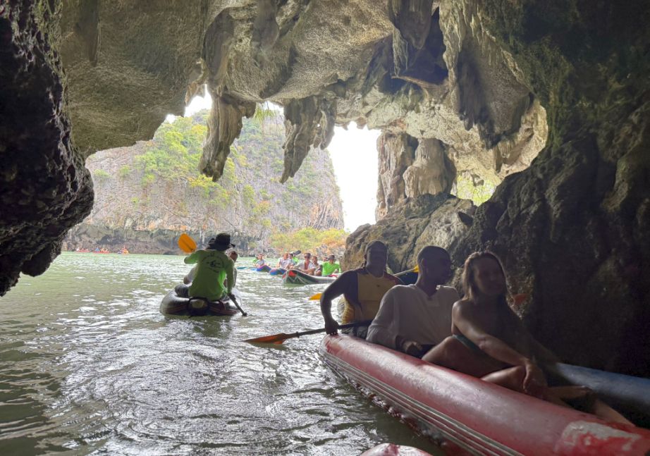 As the boat pulled away, the landscape opened up into a breathtaking panorama, countless limestone islands rising straight out of the water, scattered across Phang Nga Bay like natural sculptures.