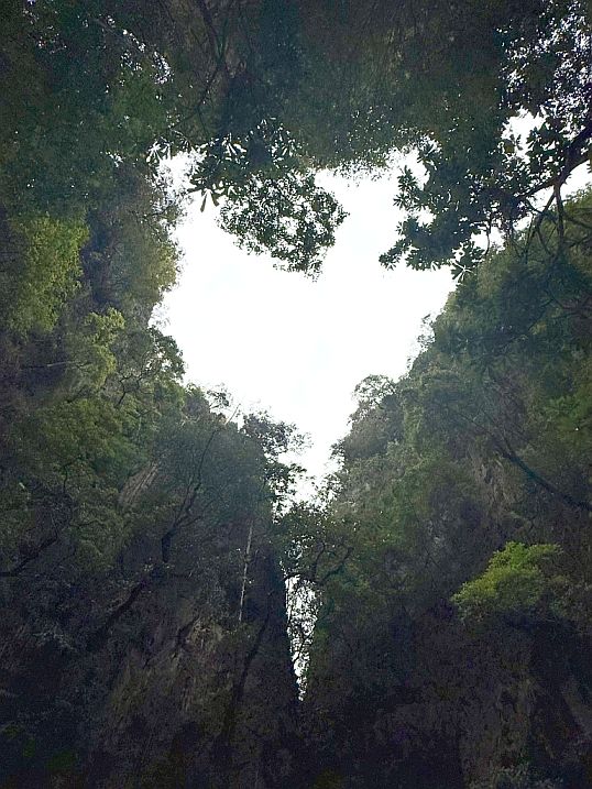 We found ourselves in a natural enclosure, surrounded on all sides by towering karst cliffs that rose straight up like the walls of a cathedral.