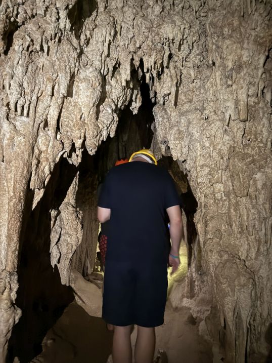 The first part of the cave is low so we had to bend down a bit.