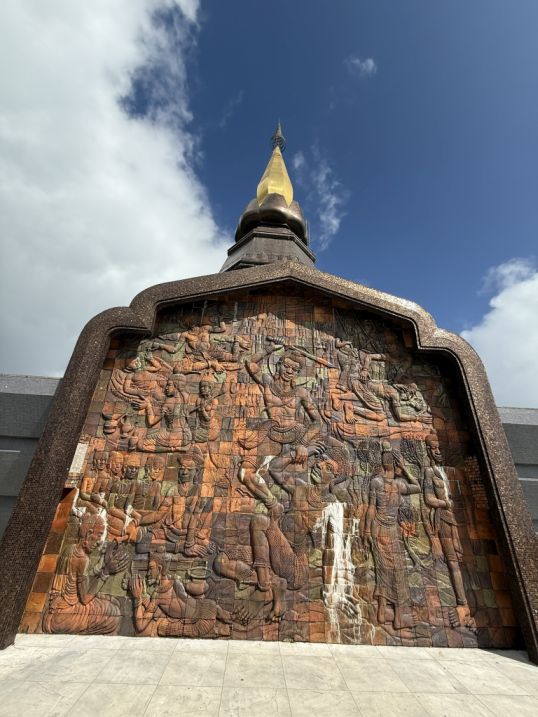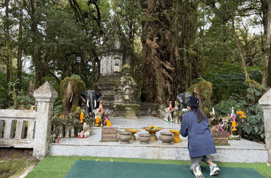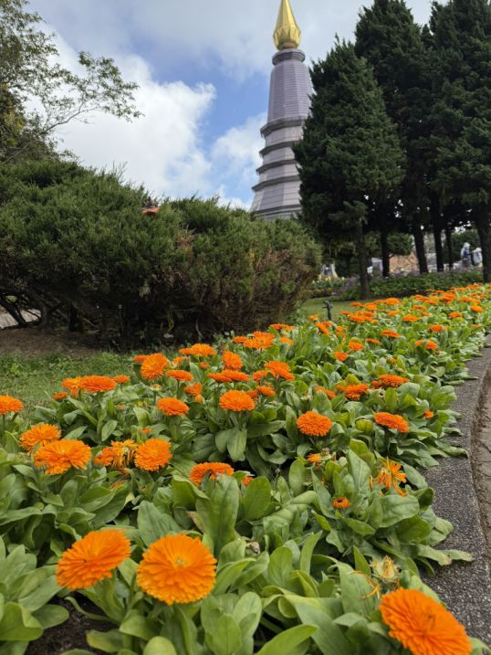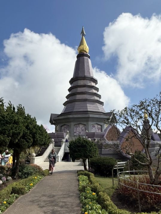 The moment we stepped into the grounds around the Queen’s pagoda, Phra Mahathat Naphaphonphumisiri, the atmosphere softens. Compared to the more formal, symbolic feel of the King’s pagoda, this side feels almost like a mountain garden in bloom, carefully designed yet still in harmony with the natural surroundings.