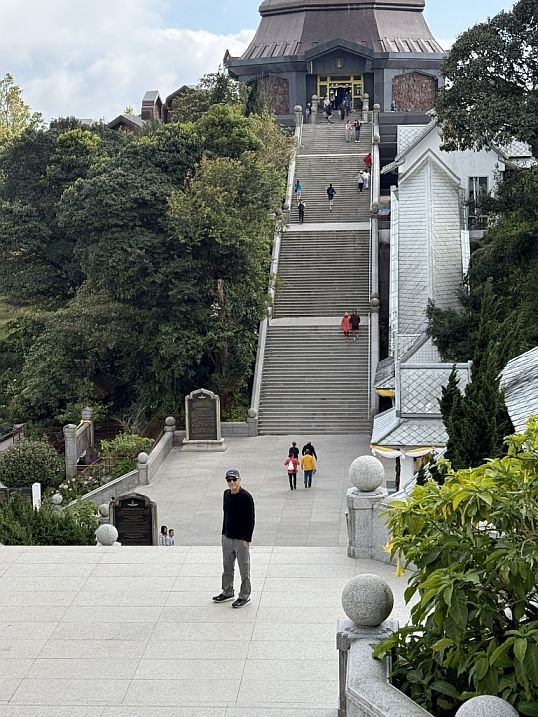 From the vibrant garden below, we made our way toward the Queen’s pagoda. Its elegant structure rising above the flowers and greenery. As we got closer, the path shifted from gentle garden walkways to a steady climb. A long staircase stretched upward, and we began making our way step by step, leaving the colorful blooms behind us.