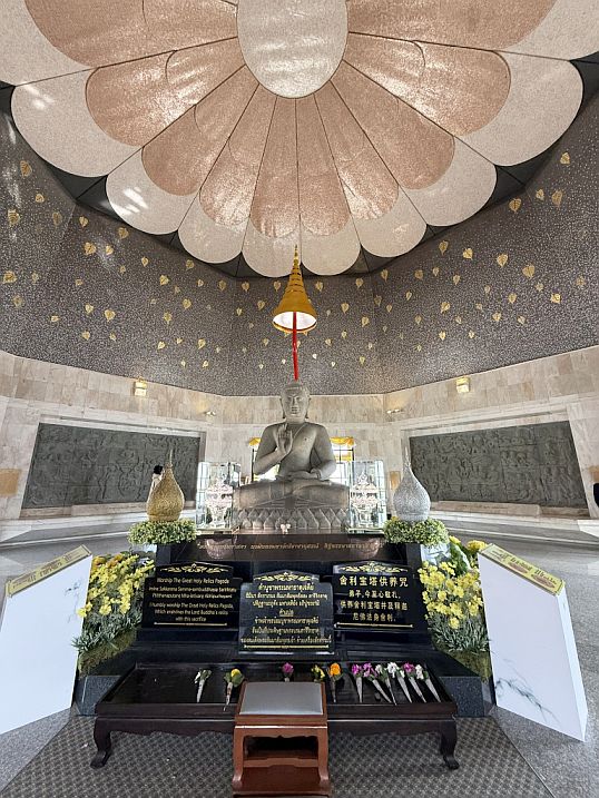 When we step inside, the space feels immediately calmer and more understated than the King’s pagoda.