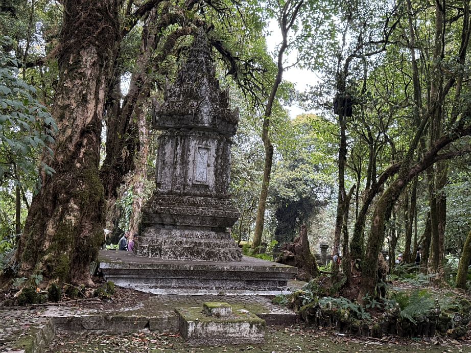 Near the highest point, there is a modest stupa tucked into the forest.