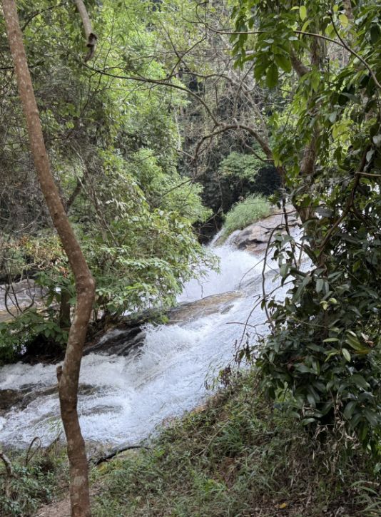 It transformed, no longer just a dramatic cascade, but now flowing like a narrow river, weaving its way through the forest. When I turned back, I could still catch glimpses of the earlier falls, partially hidden behind trees, the water slipping through the greenery as if it were tucked away from view. It gave the sense that the waterfall wasn’t a single moment, but a continuous journey down the mountain.