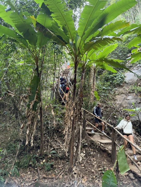 At the bottom, the trail leveled out into a flatter trail. and our guide paused to gather everyone. Here, the focus shifted from walking to understanding the environment around us. He began talking about bamboo, which was all around you. In this region, bamboo is incredibly important to local communities as it use for building homes, fences, made into baskets, tools, and even cooking utensils. It’s one of those materials that is both practical and sustainable, growing quickly and replenishing itself naturally.