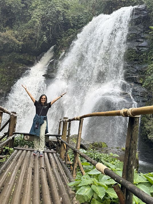 Our day unfolded as a beautiful journey through different layers of northern Thailand, starting with a meaningful visit to the Living Green Foundation, where we connected up close with elephants and learned about their transition away from riding camps, then continuing into the cool, misty heights of Doi Inthanon National Park to explore the serene royal pagodas surrounded by vibrant gardens and sweeping mountain views, and finally ending with the immersive hike along the Pha Dok Siao Nature Trail, where forest paths, cascading waterfalls, cultural touches, and terraced farms gradually led us into the peaceful rhythm of village life in Ban Mae Klang Luang. A full day that moved seamlessly from wildlife to spirituality to nature and community, leaving us with a deep appreciation for both the landscape and the people who call it home.