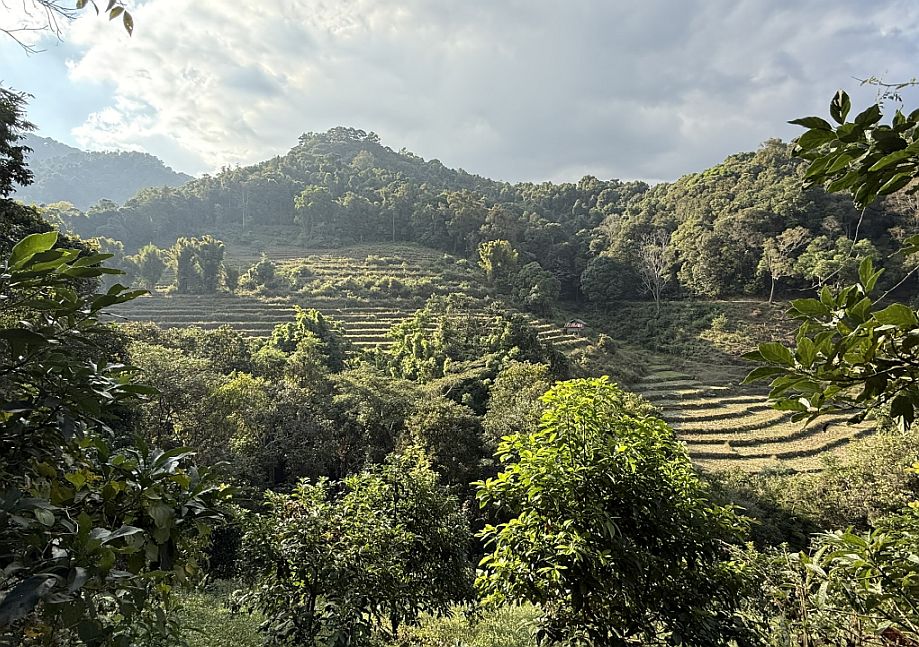 Along the way we noticed coffee trees dotted with red and yellow cherries, which is another important part of life here. Through efforts like the Royal Project Foundation, coffee became one of the key alternatives to opium farming. Today, villages like this produce high-quality Arabica coffee, and it has become an important and sustainable source of income.