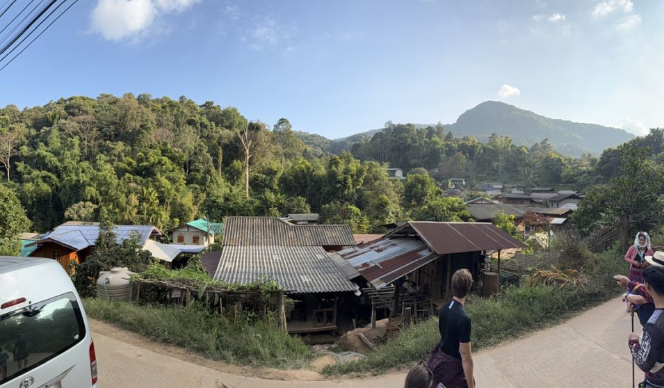 As we stepped out onto the dirt road at the end of the trail, we had clearly arrived at Ban Mae Klang Luang. From where you stood, the land dropped gently below you, revealing a cluster of homes nestled into the hillside.