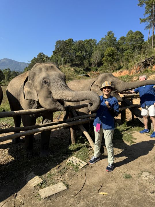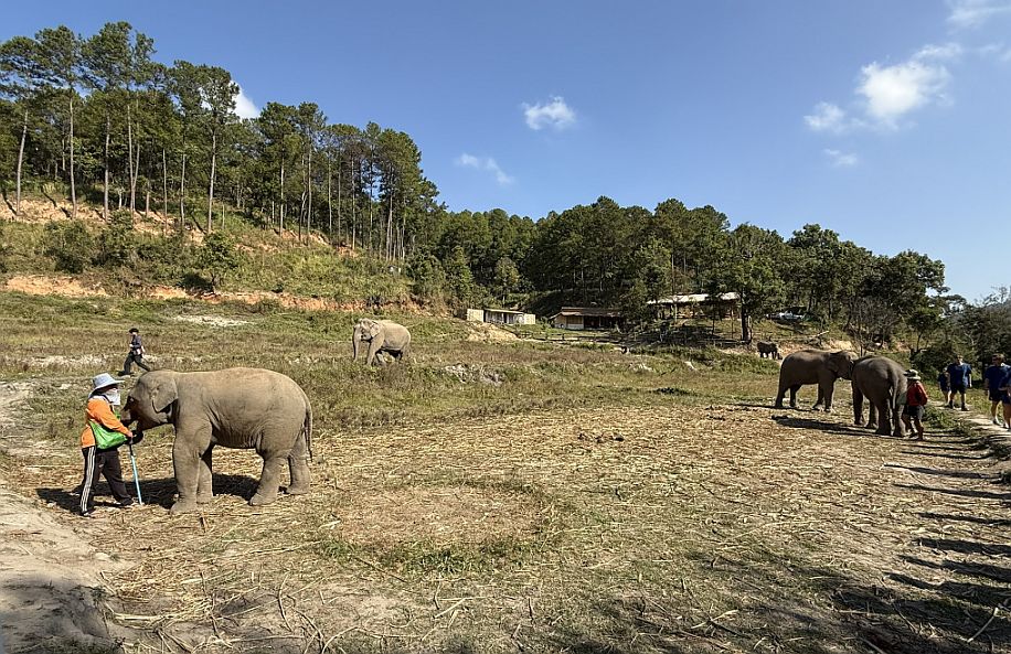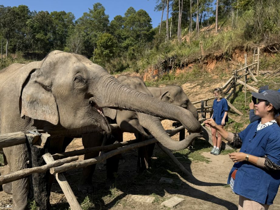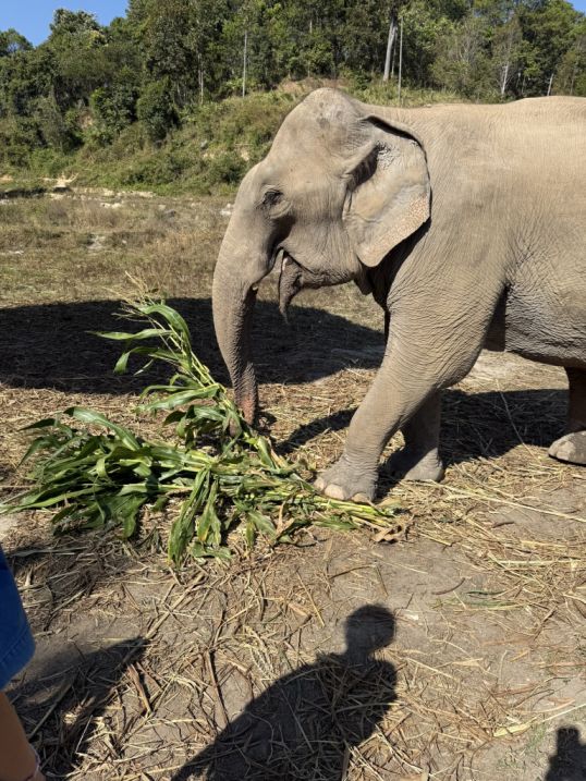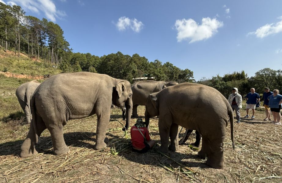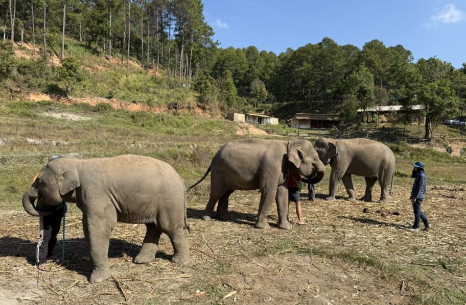 These elephants are what you might call “semi-free.” They are not confined in the way traditional camps once kept them, and they are no longer working in logging or giving rides. But they also can’t simply be released back into the wild. Many were born in captivity or have spent most of their lives around humans. They may lack survival skills, and in places like northern Thailand, there’s also limited safe habitat left for them. So sanctuaries like this exist in a kind of middle ground: they provide food, medical care, and protection, they allow more natural behaviors and social bonding. but they still rely on tourism to fund those operations.