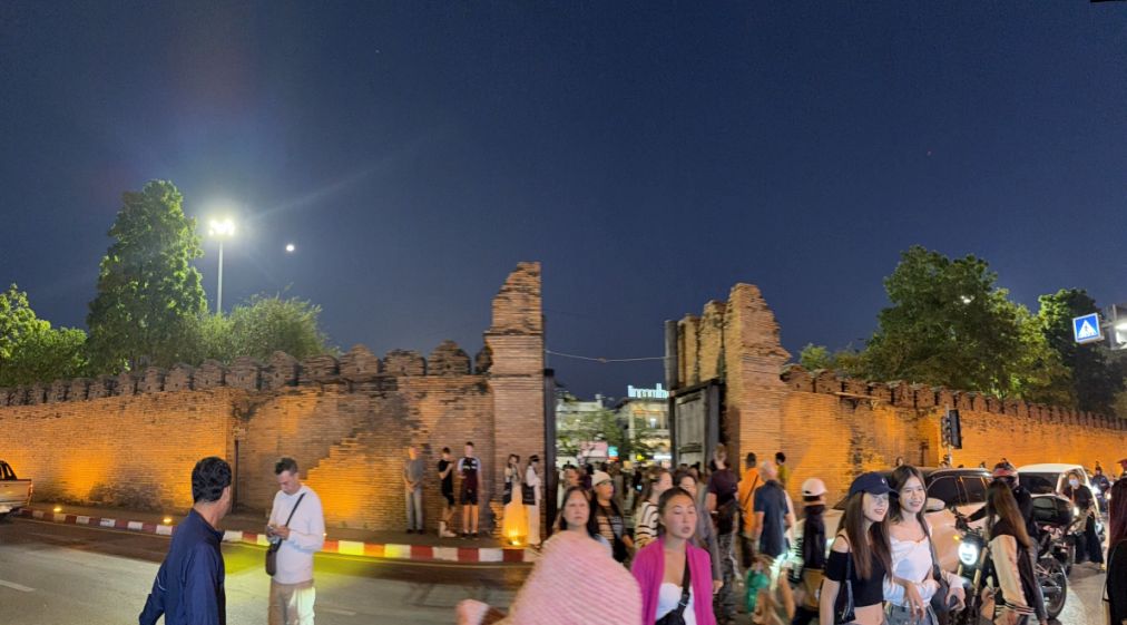 Then stepping outside the old gate "Tha Phae Gate" , we are met with a wide open space filled with people, lights, and energy, making it one of the most iconic and photographed spots in the city.