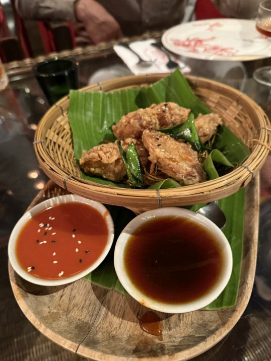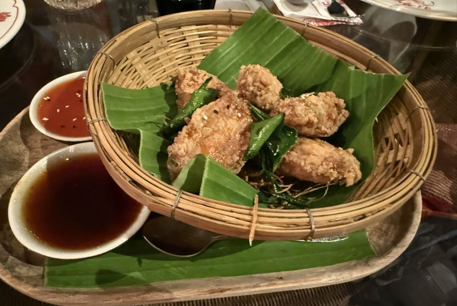 We began with crispy deep-fried chicken wings paired with a rich caramelized fish sauce dip.