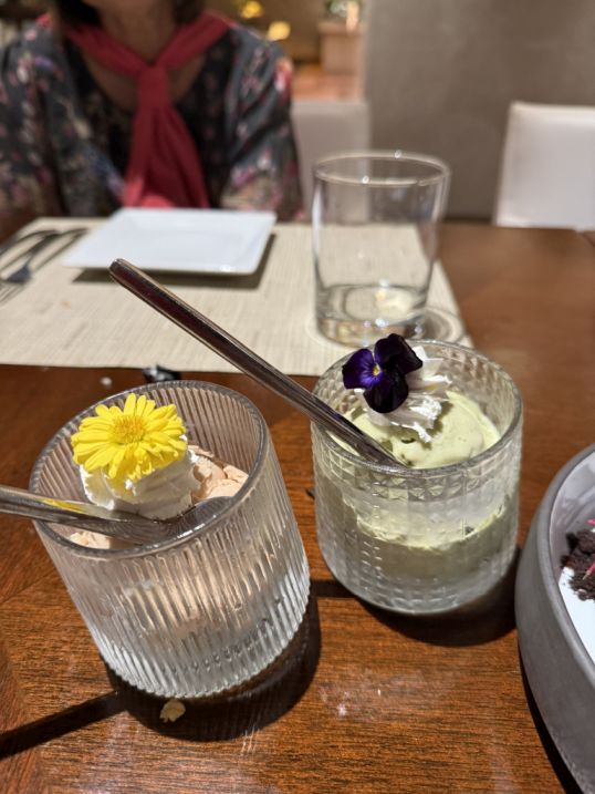 Dessert brought things back to a high note. The pistachio and sabayon gelato was excellent, smooth, rich, and full of flavor.